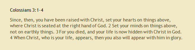 Since, then, you have been raised with Christ, set your hearts on things above…